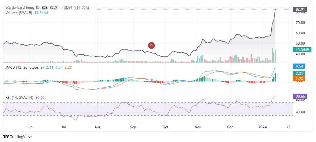 On January 11, Wardwizard Innovations & Mobility witnessed a notable surge in its stock price, with shares trading approximately 14 percent higher on an intraday basis. This uptick was accompanied by a significant increase in trading volume, reaching 1.96 times the usual volume on the BSE. This surge not only propelled the stock to its fresh 52-week high but also indicated a price volume breakout. The positive momentum in the market seems to be attributed to the company's recent announcement at the 10th Edition of Vibrant Gujarat Global Summit, where Wardwizard unveiled six concept models of electric vehicles. This includes models under the brand name "Joy e-bike" for electric two-wheelers and "Joy e-rik" for electric commercial vehicles. The company's showcase of high-speed electric scooters, electric commercial vehicle concepts, and the unveiling of next-gen hydrogen fuel cell and electrolyzer technology has garnered investor attention, contributing to the stock's upward trajectory.